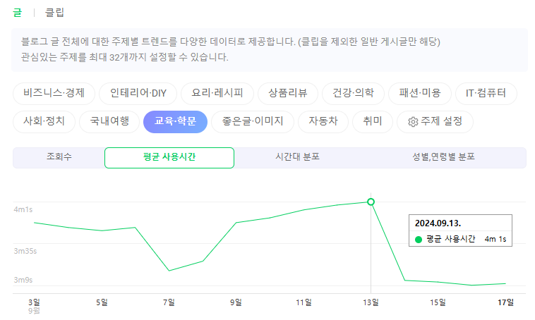 평균 사용시간이 높은 주제로 블로그 구독자 유입은 어떨까요?