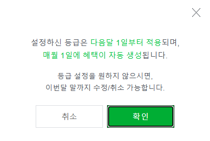 3.설정한 등급은 다음달 1일부터 적용이 되며 매월 1일에 혜택이 자동 생성됩니다.