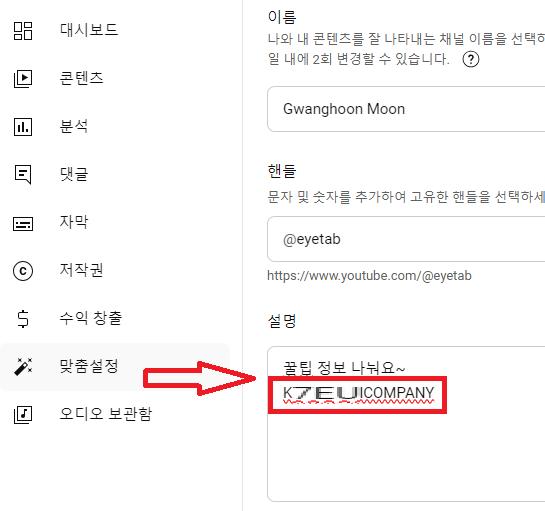 12.짤스튜디오에서 주는 코드번호를 맞춤정보 > 설명에 붙여넣기 해요.