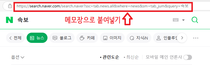 1.네이버 뉴스 카테고리 "속보" 검색어 입력해요.