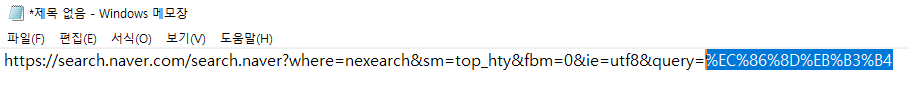 메모장으로 붙여 넣기 하면 아래 그림과 같이 속보라는 단어가 코드화 되어 있어요.(아래 파란색 하이라이트)